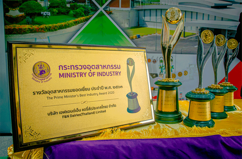 ​บริษัท เอฟแอนด์เอ็น แดรี่ส์ (ประเทศไทย) จำกัด ได้รับคัดเลือกให้รับรางวัลอุตสาหกรรมยอดเยี่ยม โดยคุณสุชิต ริ้วจรูญ กรรมการผู้จัดการ บริษัท เอฟแอนด์เอ็น แดรี่ส์ (ประเทศไทย) จำกัด เป็นตัวแทนบริษัทรับรางวัลจาก นายกรัฐมนตรี พลเอก ประยุทธ์ จันทร์โอชา และคุณสุริยะ จึงรุ่งเรืองกิจ รัฐมนตรีว่าการกระทรวงอุตสาหกรรม ในพิธีมอบรางวัล The Prime Minister’s Industry Award 2020 ซึ่งจัดขึ้น ณ สโมสรทหารบก ในวันที่ 14 ธันวาคม 2563