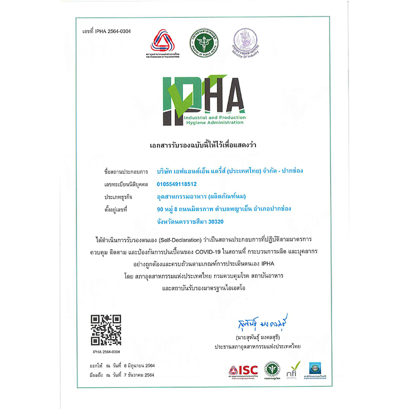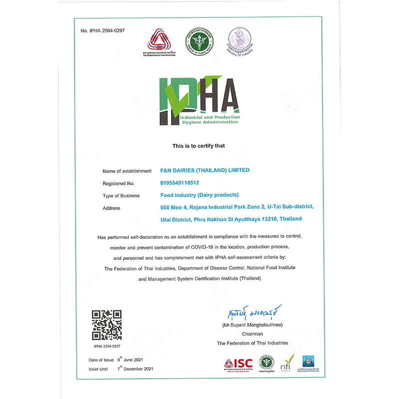 ชื่อสถานประกอบการ : บริษัท เอฟแอนด์เอ็น แดรี่ส์ (ประเทศไทย) จำกัด ผู้ประกอบการ : บริษัท เอฟแอนด์เอ็น แดรี่ส์ (ประเทศไทย) จำกัด ได้ปฏิบัติตามมาตรฐาน ข้อกำหนด หลักปฏิบัติ ดังนี้ มาตรการสำคัญ ด้านการป้องกันโรค
