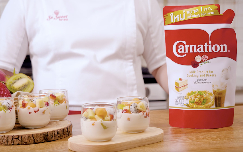 เมนูยอดฮิตวันนี้ “เต้าฮวยฟรุ้ตสลัด ” จากคาร์เนชัน หอมหวาน เย็นชื่นใจ ด้วยผลไม้หลากหลายชนิด ผสมผสานกับนมข้นจืดคาร์เนชันที่ให้ความหอมอร่อย ได้เนื้อเต้าฮวยเนียน ๆ ในแบบที่คุณพลาดไม่ได้ ลองทำเลย!